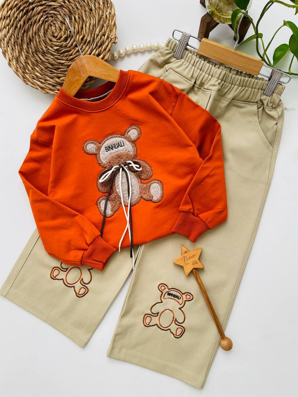 ست دخترانه خرس بنددار با شلوار کتان