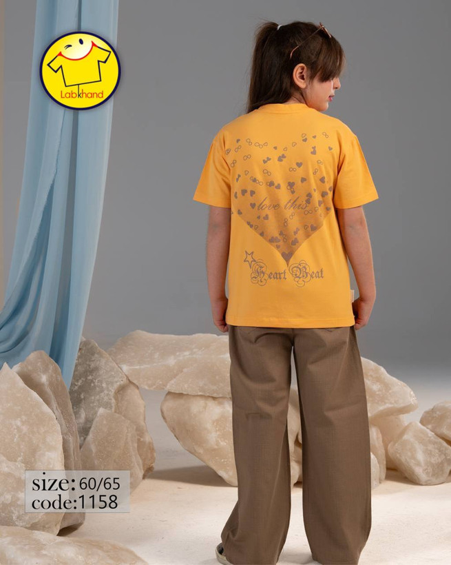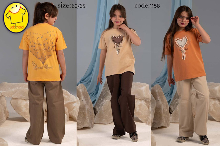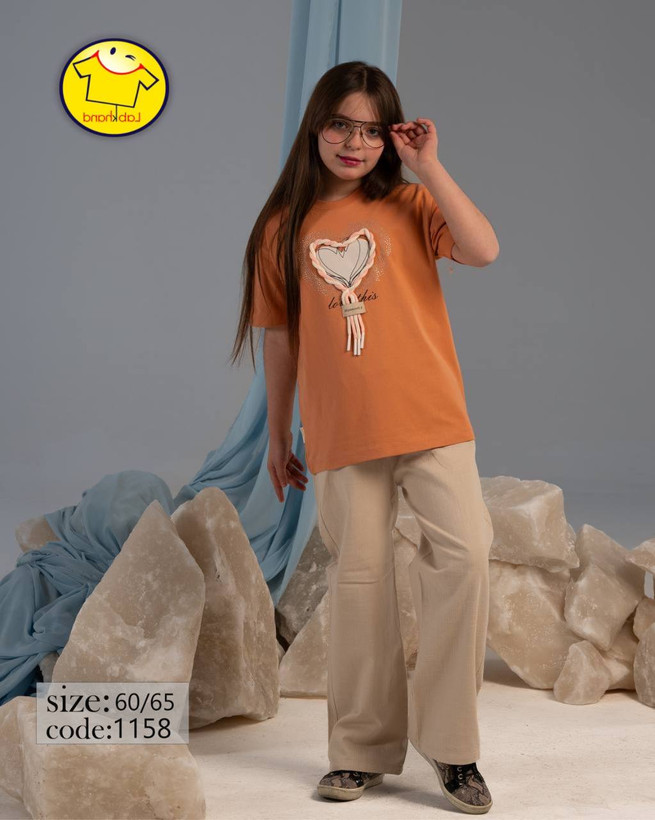 ست دخترانه بلوز و شلوار کتان بگ مدل قلب تیکه دوزیو